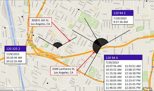 Cell Site location data is also requested from the network operator, this is so we can match the cell ID used within the call data, to its relevant cell site and sector. The data includes the name of the site, the grid reference, postal address and the Azimuth, or direction of the sector used. It’s the sector data which can help us to establish the geographical location of a mobile phone relative to the cell site being used. Network operators provide the cell used at the start and the end of a call, some calls use the same cell at the start and the end of the call, while others will use different cells.