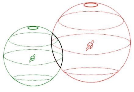 With two satellites you have an intersection of two spheres and the receiver could be in any position along those intersecting spheres. Once again, it is more than just the black lines in the diagram, your position could be at any point inside the three-dimensional shape described by the black line.