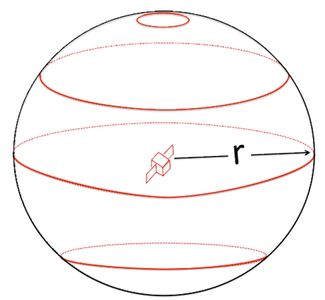 Each satellite sends out a signal that includes its own position and the time. The receiver can calculate the time it took the signal to travel and multiply that by the speed of the signal (the speed of light) to compute the distance. That distance ("r" in the figure) defines a sphere. The receiver could be at any point on that sphere. On the diagram it is more than just the black line, it is the entire outer shell of the sphere. (Remember: three dimensions.)